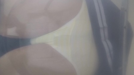 A cross-dressing boy couldn't hold back and peed his pants...