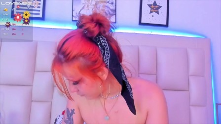Sexy Latina with a cute face and red hair plays the ukulele naked